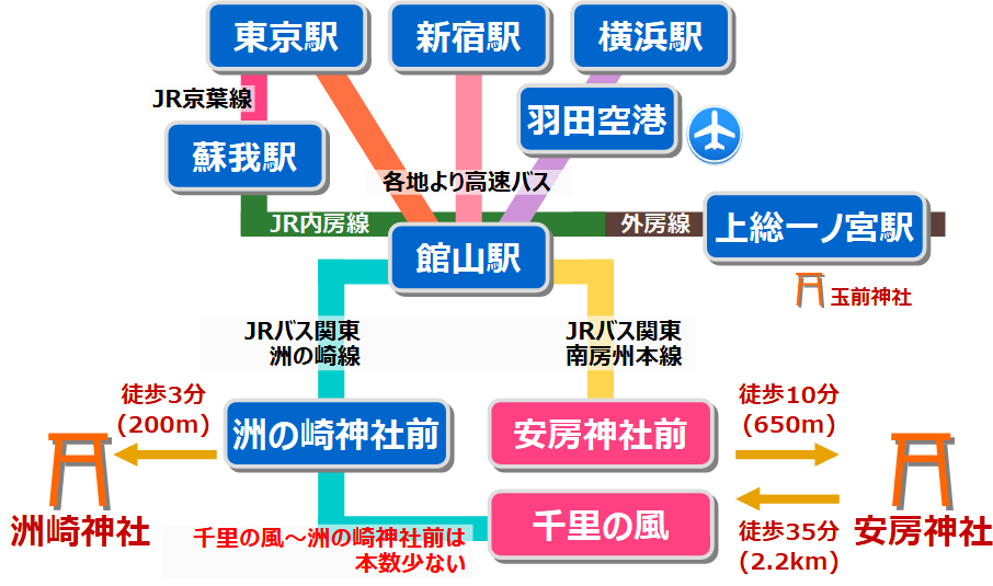 安房神社から洲崎神社への移動方法所要時間注意点