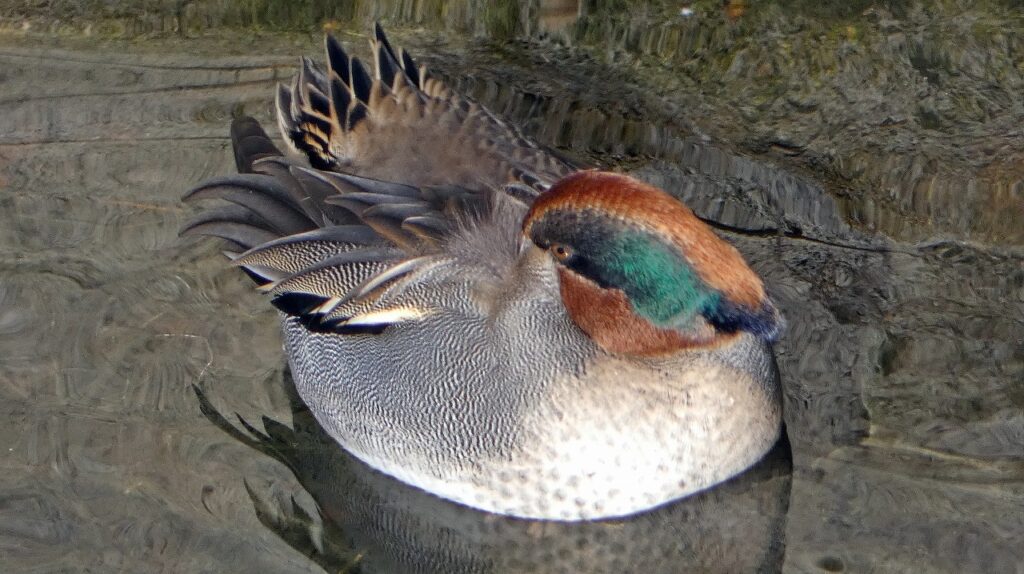 見れば見るほど繊細な模様と色づかいのコガモさん。
