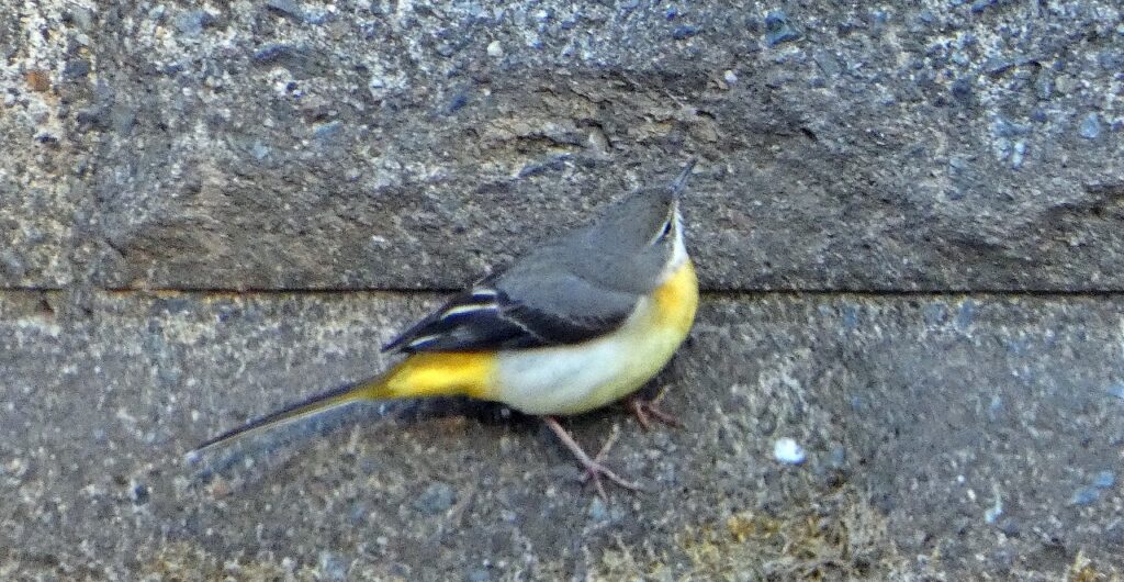 ほぼ垂直の壁なのに、わずかな突起をがしっと掴んでこの体勢を保てるの、身軽なキセキレイさんでも結構な筋力とバランス力が必要なのではないでしょうか。はさすがですね。